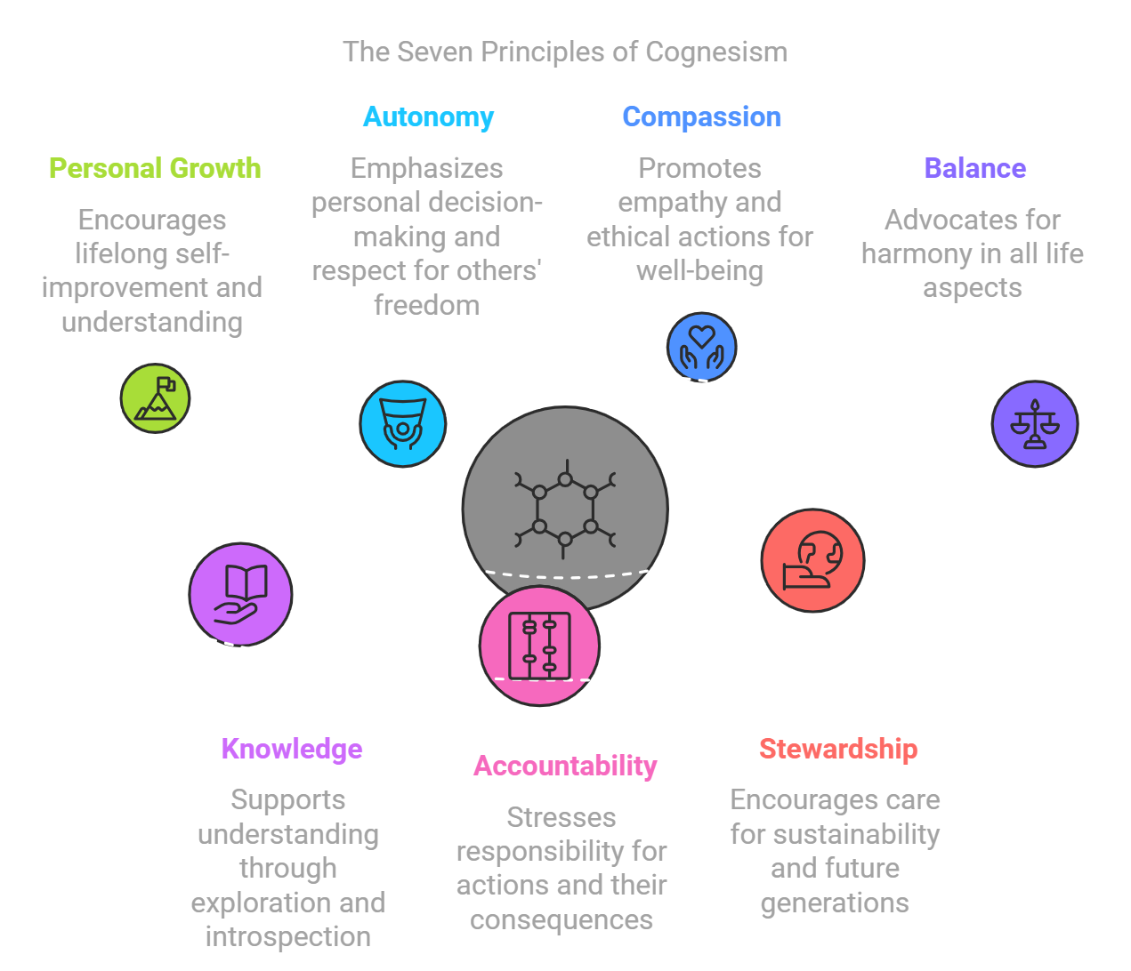 Blending of Individualism and Interconnectedness: Cognesism manages to balance the idea of individual autonomy with the recognition that all beings are interconnected. Each person is responsible for their actions, but those actions reverberate through the web of existence. This combination allows for a unique approach to ethics, where both personal freedom and communal responsibility are emphasized.